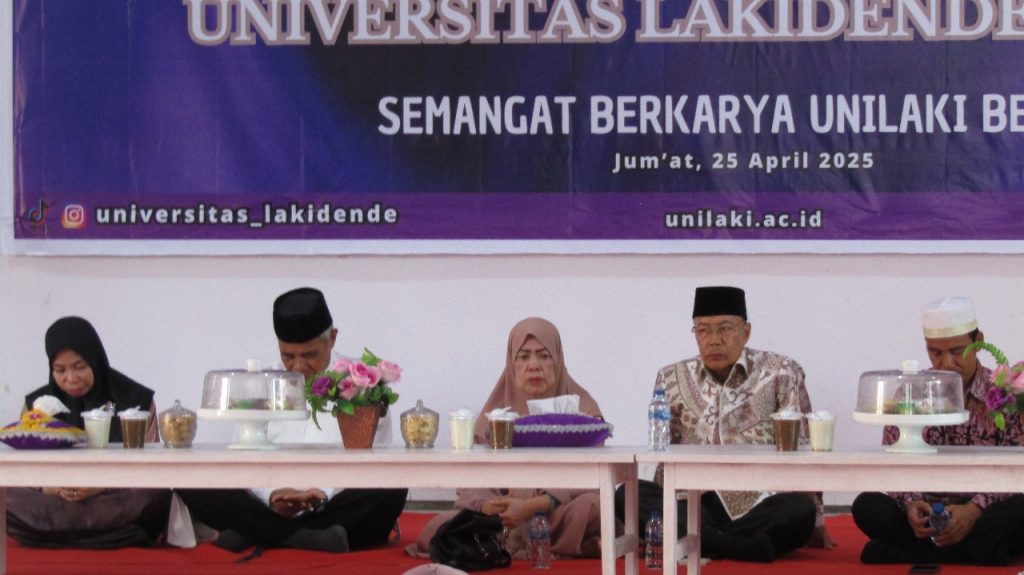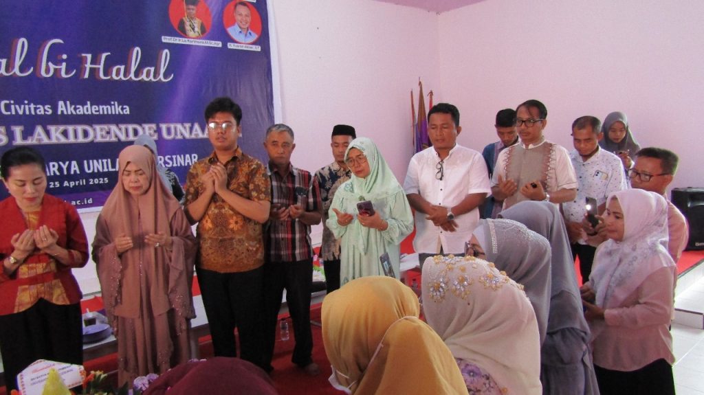 Dalam suasana penuh kehangatan dan kebersamaan, Universitas Lakidende menggelar acara halal bi halal pada Jumat, 25 April 2025 di aula utama kampus. Kegiatan ini dihadiri oleh seluruh civitas akademika, mulai dari ketua yayasan, rektor, dosen, staf, hingga mahasiswa dari berbagai program studi. Acara dibuka dengan sambutan dari Rektor Universitas Lakidende yang mengajak seluruh peserta untuk mempererat tali silaturahmi serta menjadikan momen ini sebagai ajang saling memaafkan dan memperkuat rasa kebersamaan di lingkungan kampus.